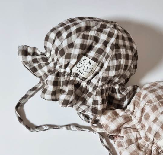 hug bebe ガーゼボンネット / 黄花 / 赤花 / ベージュチェック/ ブラウンチェック